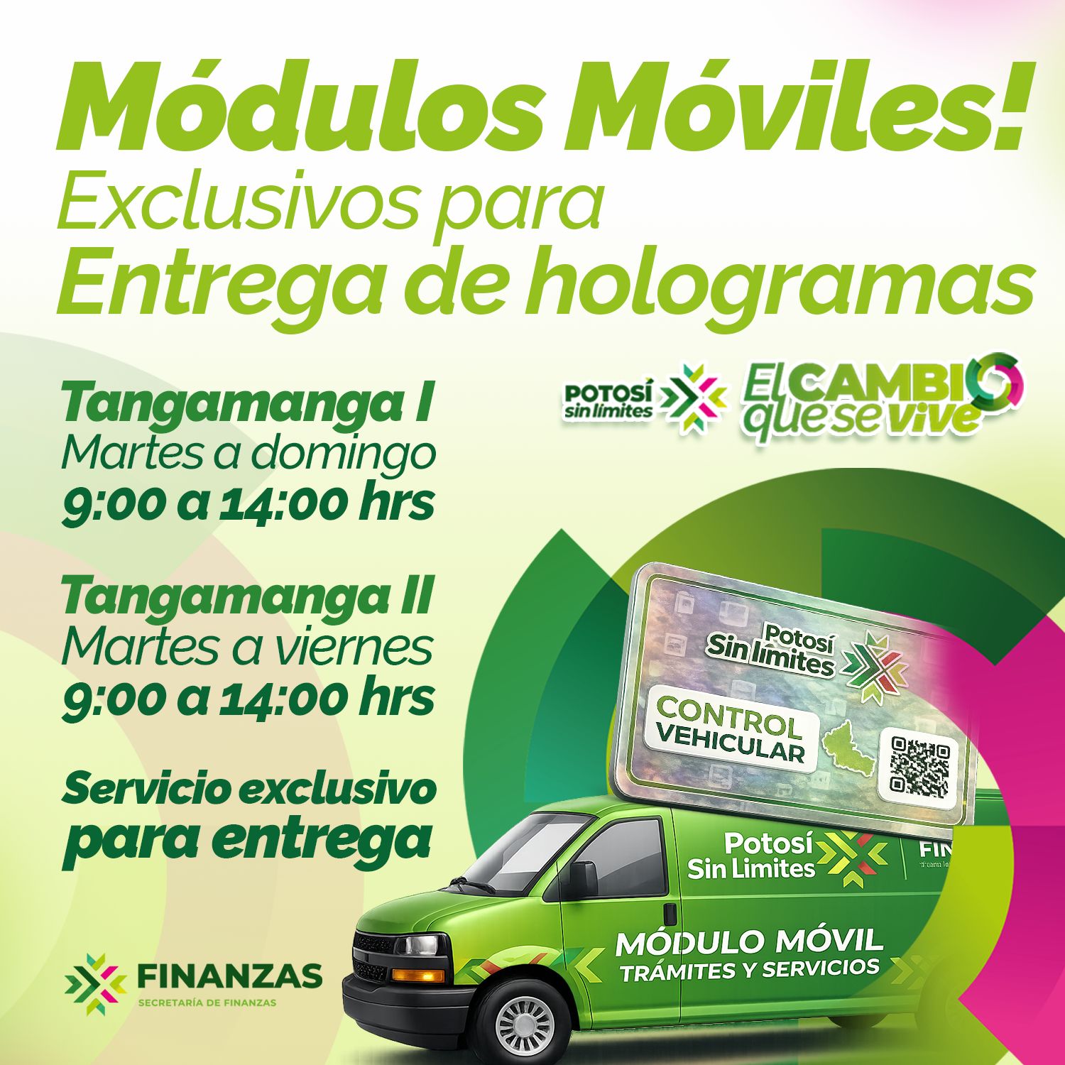 Como parte de las acciones del Gobernador Ricardo Gallardo Cardona para acercar los servicios gubernamentales, la Secretaría de Finanzas (Sefin) mantiene en operación módulos móviles para la entrega de hologramas…