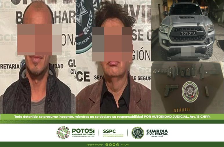 DOS MASCULINOS QUE PORTABAN ARMA DE FUEGO Y ACCESORIOS POLICIALES, DETENIDOS POR LA GUARDIA CIVIL ESTATAL