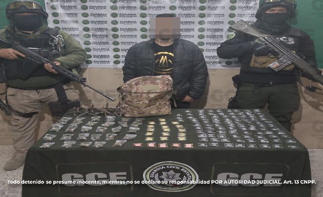 GUARDIA CIVIL ESTATAL Y SEDENA CAPTURAN A PRESUNTO NARCOMENUDISTA CON 140 DOSIS DE DROGA Y “PONCHA LLANTAS”