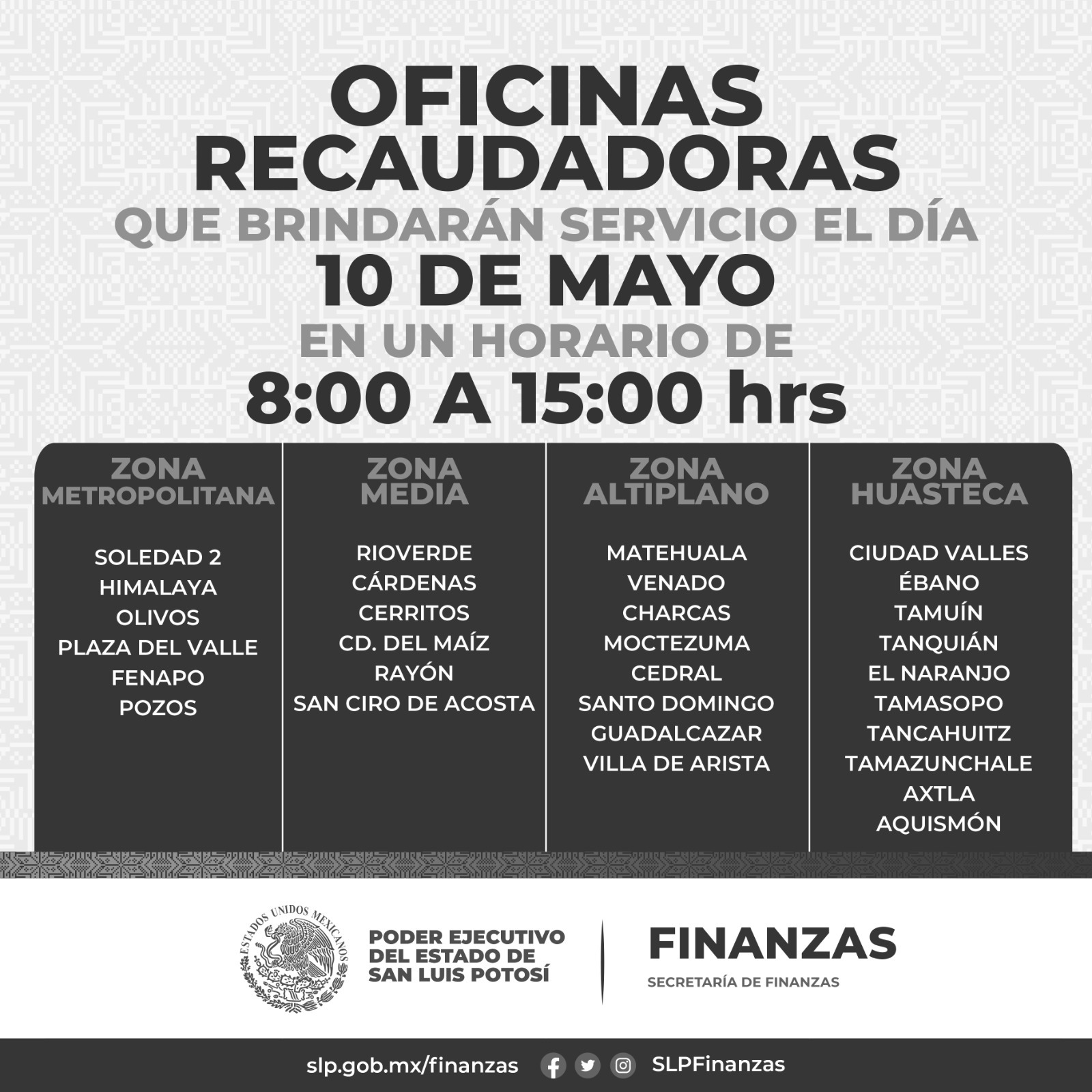 BRINDARÁN ATENCIÓN OFICINAS ESTATALES Y RECAUDADORAS ESTE 10 DE MAYO