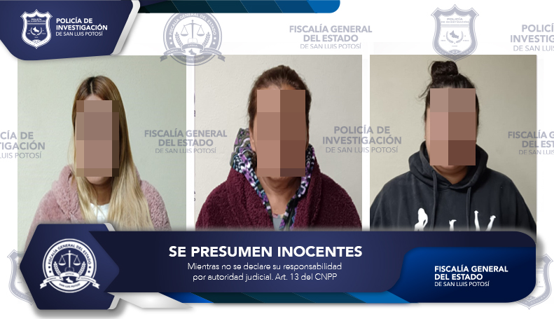 La Policía de Investigación (PDI) de la Fiscalía General del Estado de San Luis Potosí (FGESLP) cumplimentó una orden de aprehensión en contra de tres mujeres por los probables delitos…