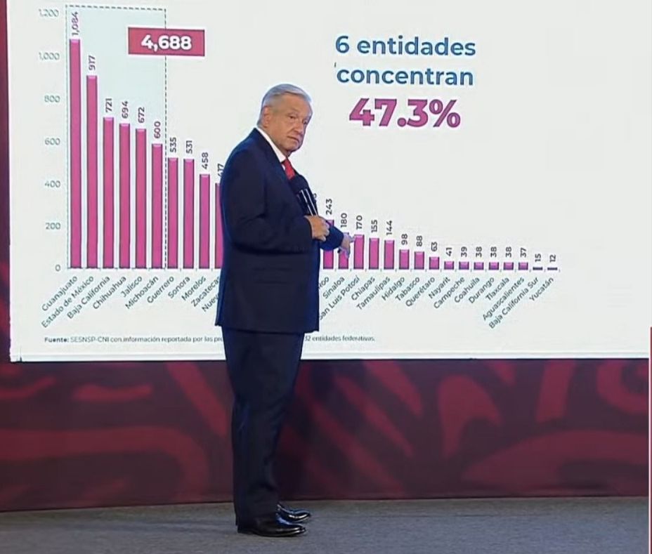 AMLO proyectó las gráficas donde SLP está por abajo de la media nacional en homicidios dolosos en general y por cada 100 mil habitantes.