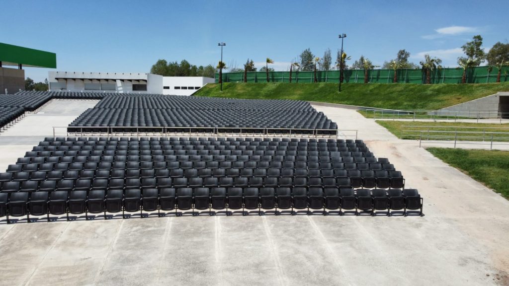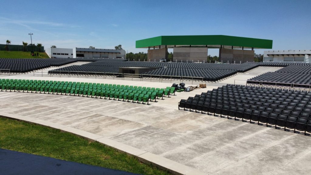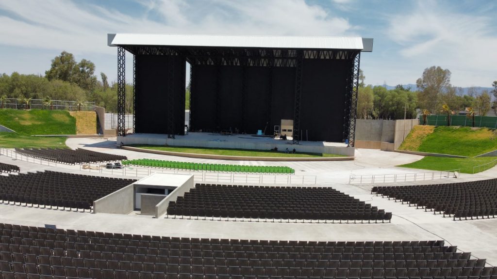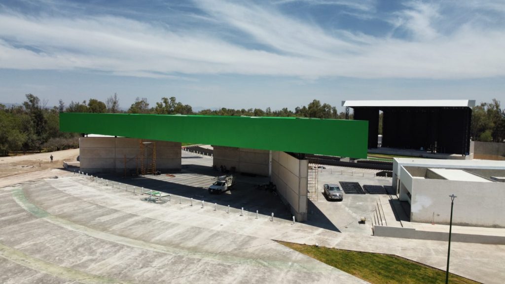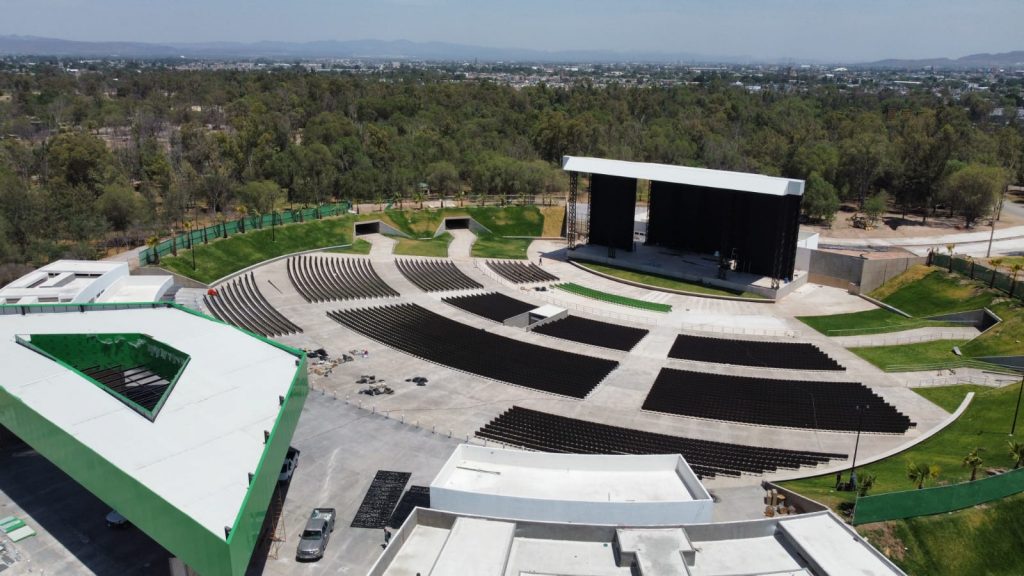 El nuevo Teatro de la Ciudad se ubica en el parque Tangamanga II, con vista panorámica, camerinos, baños y accesos inclusivos, una capacidad para más de 10 mil personas y contará con un moderno escenario equipado, espejo de agua, espacios incluyentes con rampas de acceso universal, entre otras.
