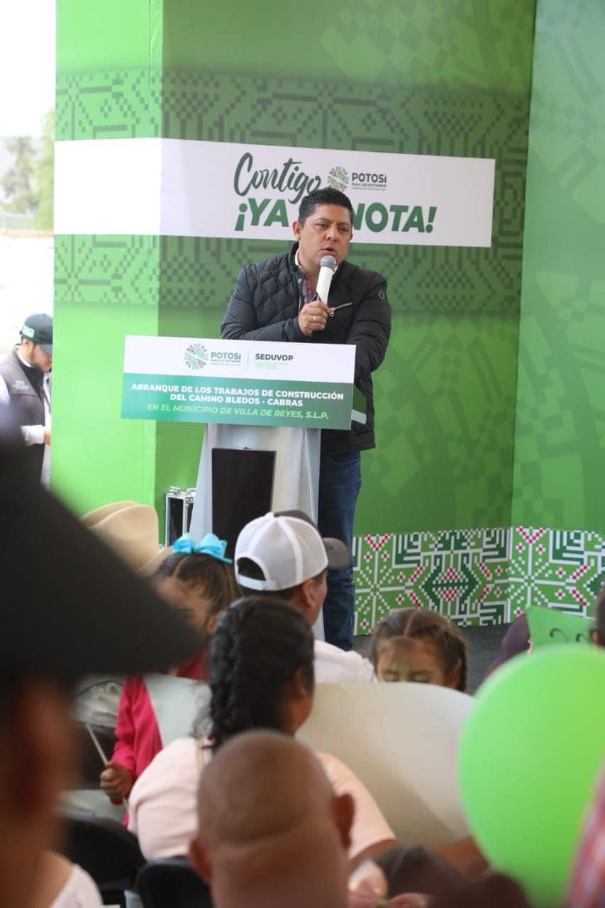 Junto al presidente municipal de Villa de Reyes, Daniel Lagunas López, el Mandatario Estatal, Ricardo Gallardo, dio el banderazo de arranque a las obras que beneficiarán a comunidades como Guadiana, El Saucillo, Calderón, La Rinconeña, La Providencia, Carranco, Bledos, Arroyo Blanco, Cabras, El Terrero y San Francisco y a los servicios de las cabeceras municipales, gracias a la conectividad que brindará en toda la zona.