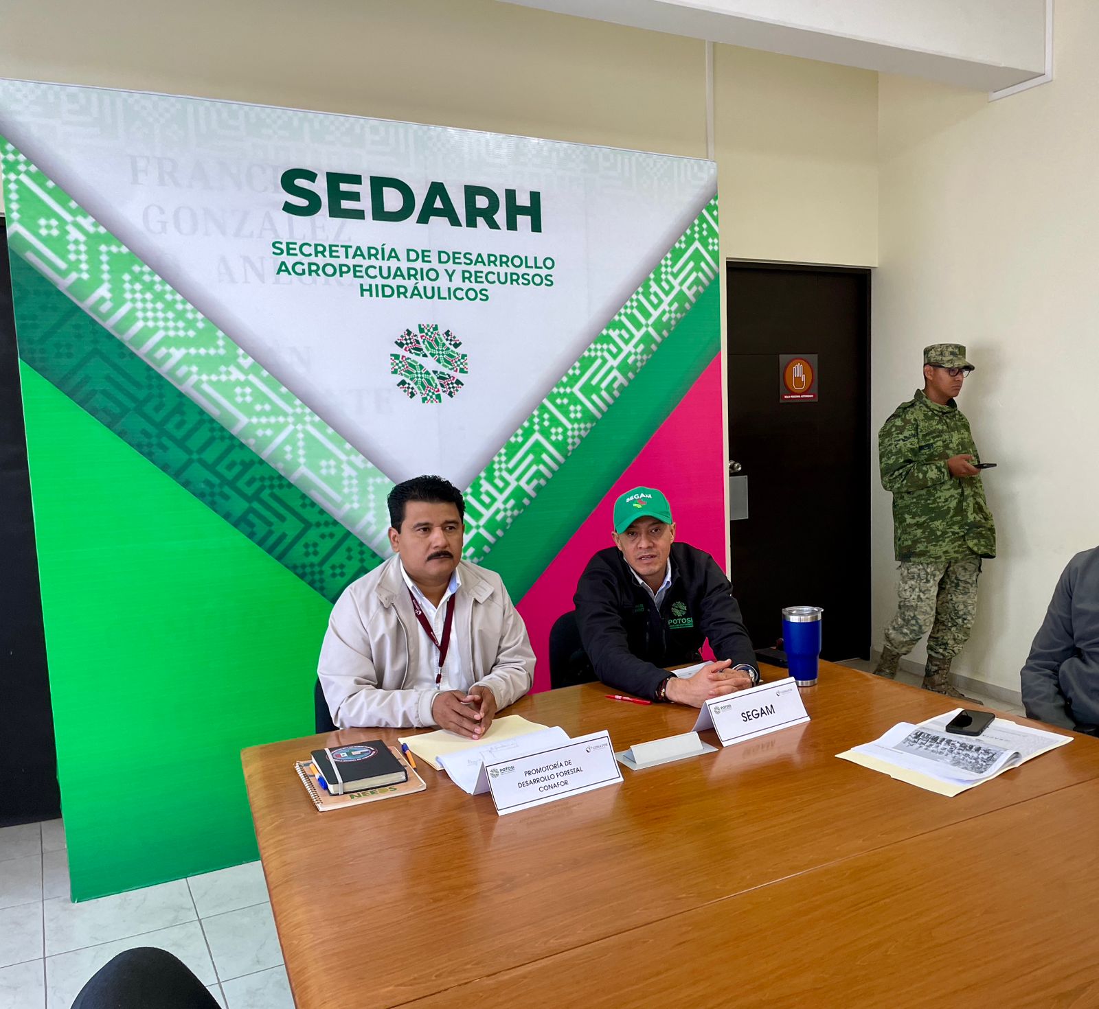 La reunión se llevó a cabo en la Secretaría de Desarrollo Agropecuario y Recursos Hidráulicos (Sedarh), al que acudieron Teodoro Morales Organista, titular de la Promotora de Desarrollo Forestal en San Luis Potosí de la Comisión Nacional Forestal (Conafor); Mauricio Ordaz Flores, director de la Coordinación Estatal de Protección Civil (CEPC); además de representantes de la Universidad Autónoma de San Luis Potosí (UASLP) y de la Secretaría de la Defensa Nacional (Sedena).