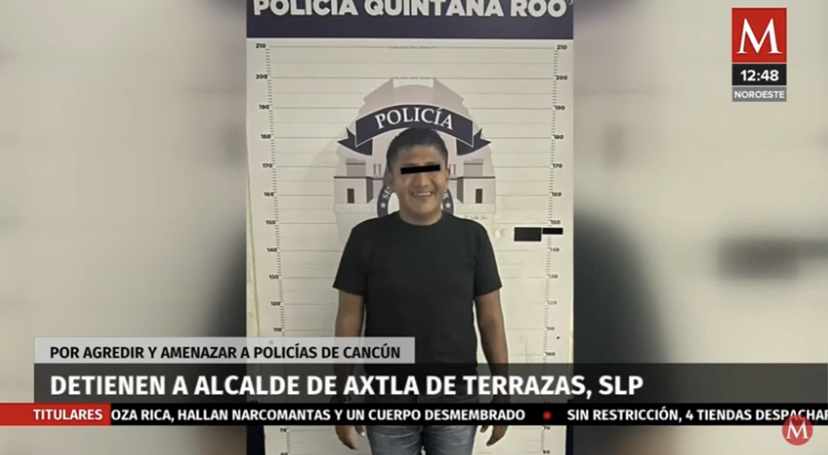 El alcalde del municipio de Axtla de Terrazas, de San Luis Potosí, Gregorio Cruz Martínez, de Morena, fue detenido por agredir y amenazar a policías de Cancún en la playa del Hard Rock.