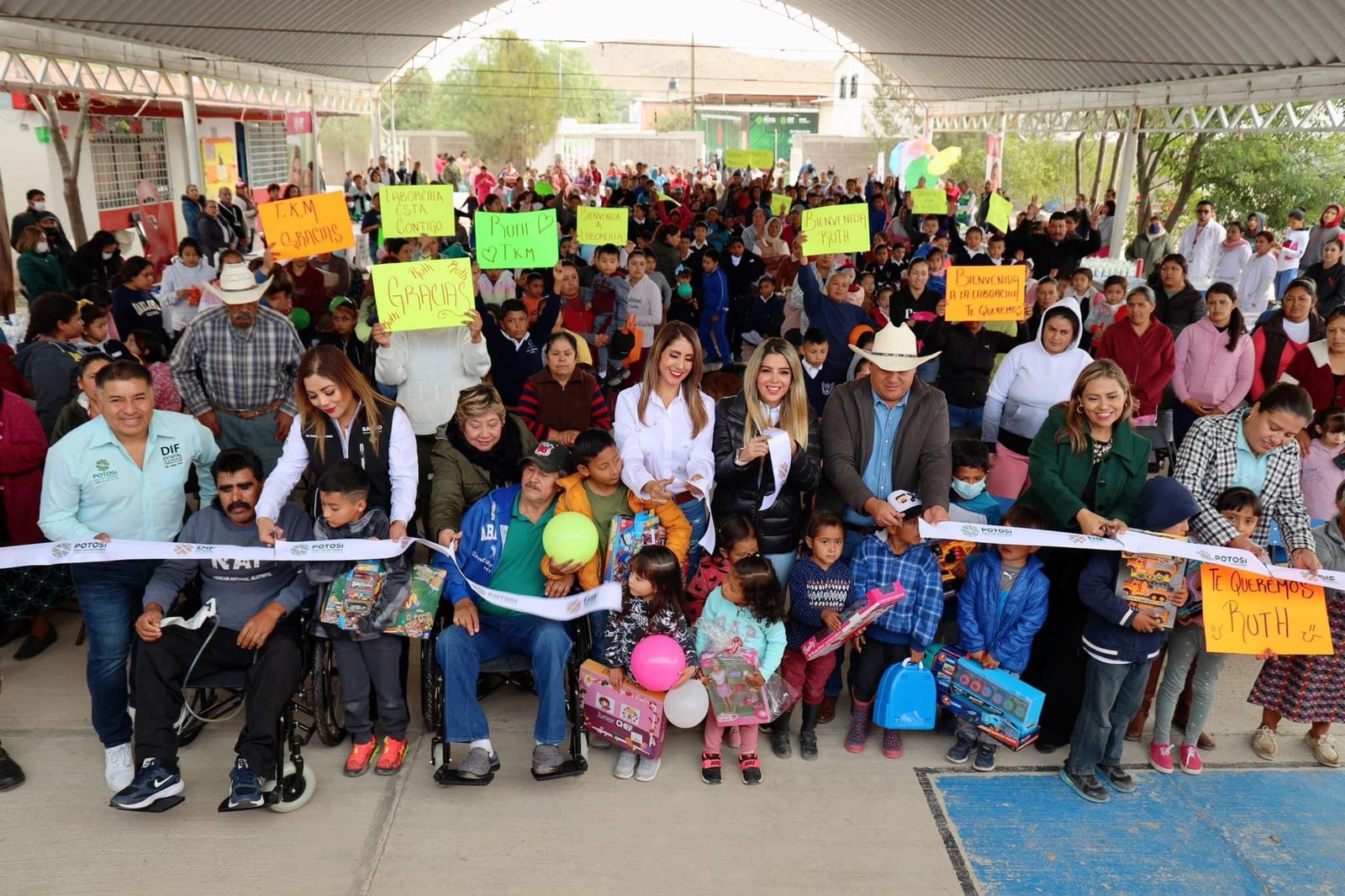 En la comunidad La Laborcilla, la presidenta honoraria del DIF, Ruth González Silva, afirmó que San Luis Potosí ya despegó hacia un desarrollo integral y pleno de las familias, al acercar a los rincones más apartados los servicios médicos gratuitos, sumado a la entrega de sillas de ruedas, andaderas, bastones y carriolas para personas con discapacidad, además de la distribución de kits menstruales y cobijas.