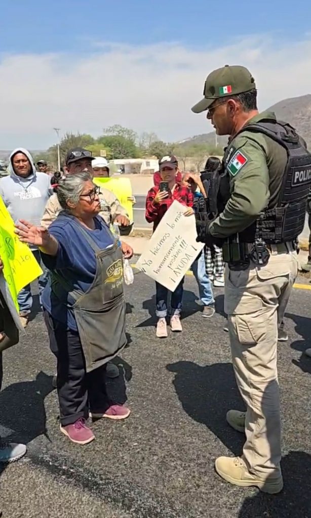 S.L.P.- Oficiales de la Guardia Civil Estatal (GCE) adscritos a la División Caminos, realizan dispositivo de seguridad en la carretera 57, auxiliando a usuarios de dicha vía, tras los cierres realizados por personas manifestantes, quienes también son protegidas, a fin de evitar que puedan ser víctimas de algún accidente vial.