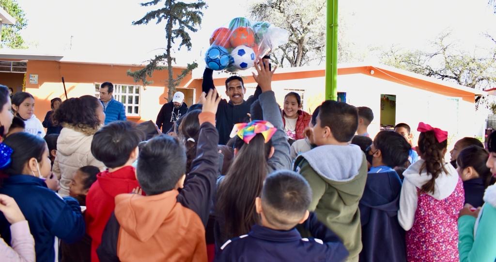 El Diputado Federal por el Distrito 01, Roberto Alejandro Segovia Hernández dio inicio con su gira denominada “JanoBalones” en diferentes escuelas de Matehuala, entregando paquetes de 20 balones a cada una con dos propósitos fundamentales, impulsar la activación física de las y los niños y reforzar el vínculo con las instituciones educativas, para escuchar sus necesidades y poder gestionar más apoyo para la educación.