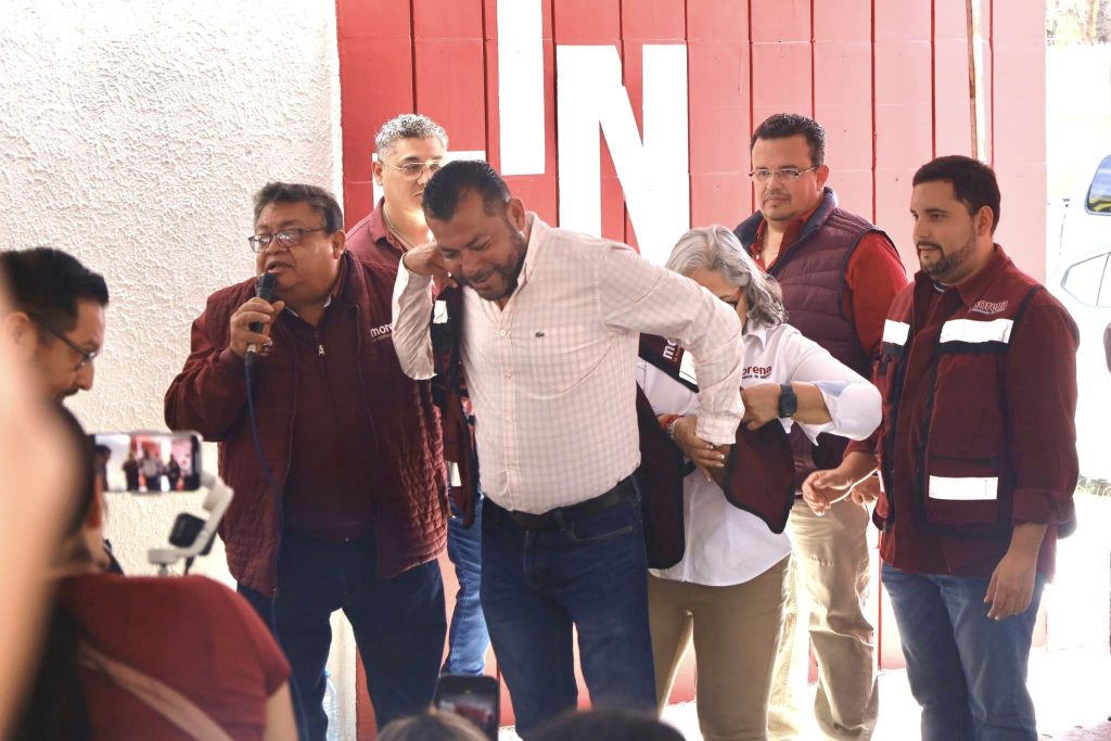 El ex Edil tomó protesta como integrante de Morena en el municipio el pasado sábado, en un acto en el que estuvo presente la líder estatal del partido, Rita Ozalia Rodríguez, le entregó un chaleco guinda a Estrada Guzmán y lo presentó como nuevo militante del partido.