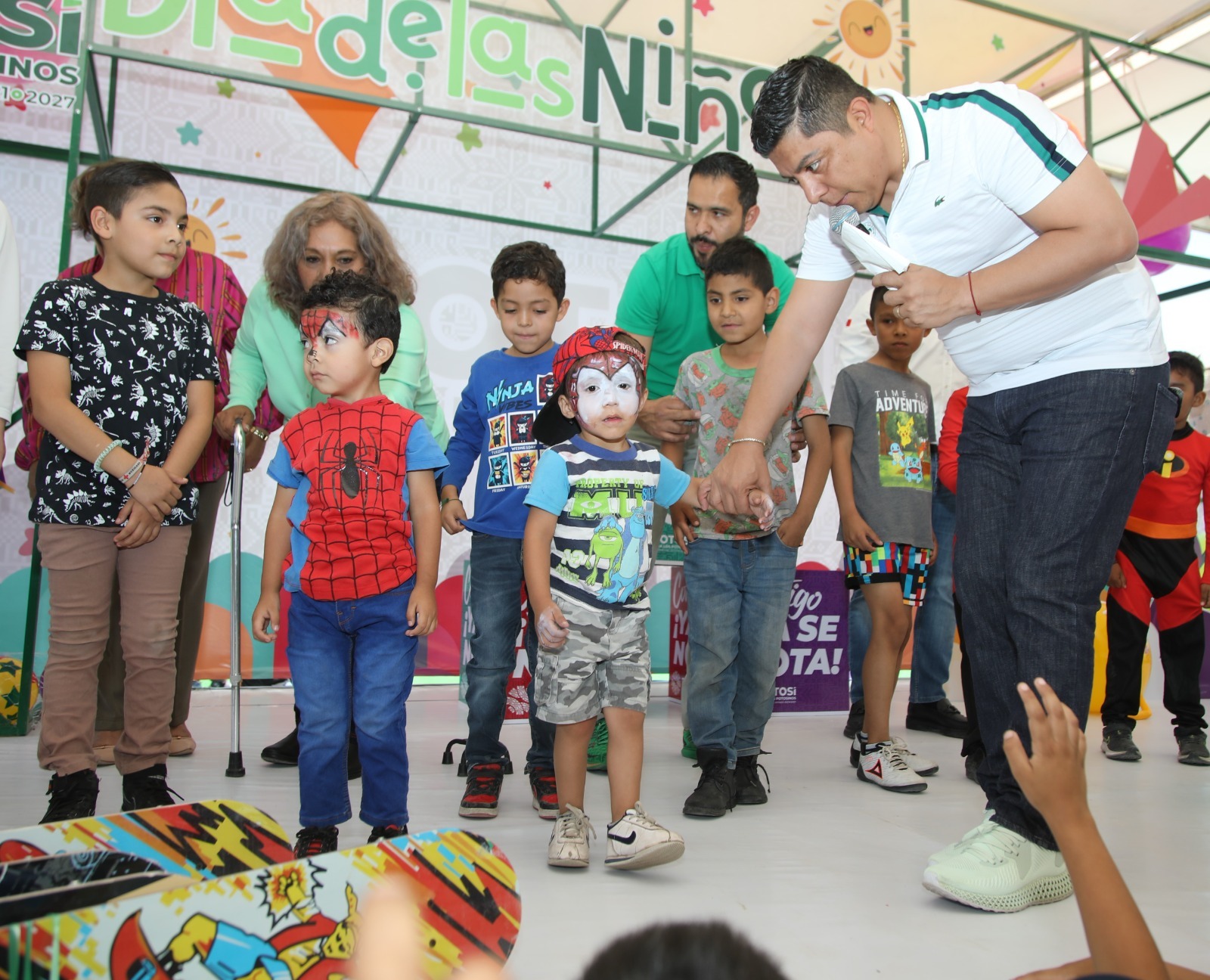 Soledad de Graciano Sánchez, SLP. – En medio de un ambiente festivo, cordial y de sana convivencia, el Gobernador de San Luis Potosí, Ricardo Gallardo Cardona, encabezó este jueves la celebración del Día de las Niñas y los Niños, donde entregó dos mil juguetes, además de que se ofreció un atractivo Show Infantil y muchas sorpresas, como nunca se había hecho en su día.