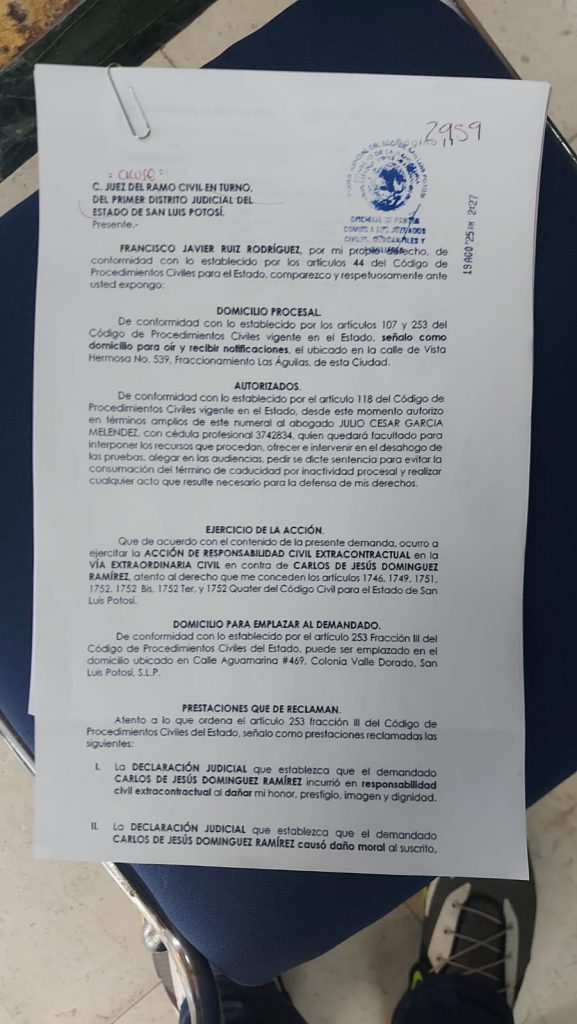 El empresario informó que el pasado 20 de agosto interpuso tres demandas civiles contra los señalados, con el objetivo de que se ordene judicialmente la reparación del daño moral, al honor, prestigio e imagen, así como la rectificación de la información divulgada desde el 31 de julio.
