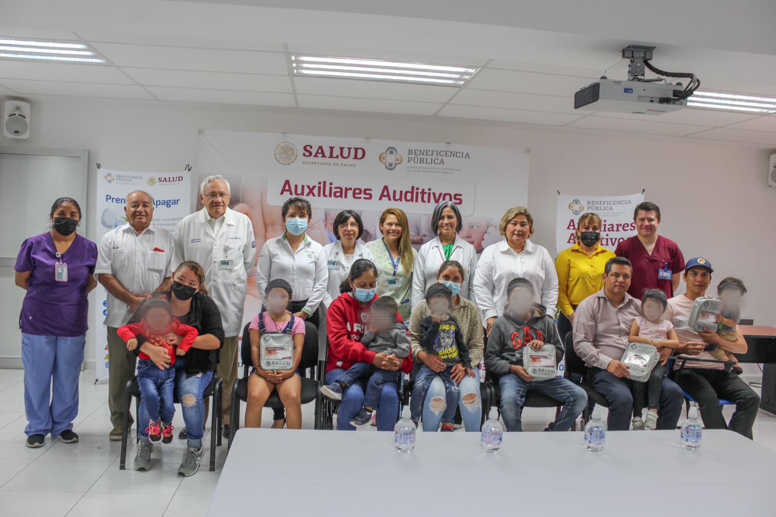 Por instrucción del Gobernador de San Luis Potosí Ricardo Gallardo Cardona, de garantizar el acceso a la salud a las y los habitantes de las cuatro regiones del Estado con un servicio médico de calidad y atendiendo las necesidades de las y los potosinos, el titular del Patronato de la Beneficencia, Agustín Alarcón y el director del Hospital Central «Dr. Ignacio Morones Prieto», Jorge Aguilar García, entregaron dispositivos a siete niñas y niños que ahora podrán mejorar su calidad auditiva y capacidad de comunicación.