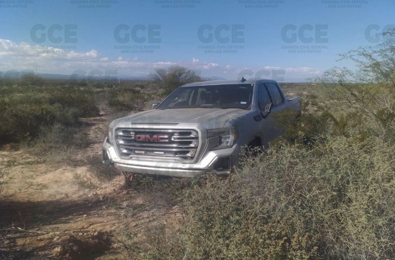 Mediante el despliegue de los oficiales de la GCE en el ejido Viborillas, tras los reportes anónimos de la presencia de presuntos armados, ubicaron en el lugar una camioneta marca GMC, tipo Sierra, color plata, con placas del Estado de Texas, dentro de la cual se visualizaba diversos objetos, como cargadores y equipo táctico, por lo anterior se les dio aviso a las autoridades de Servicios Periciales.