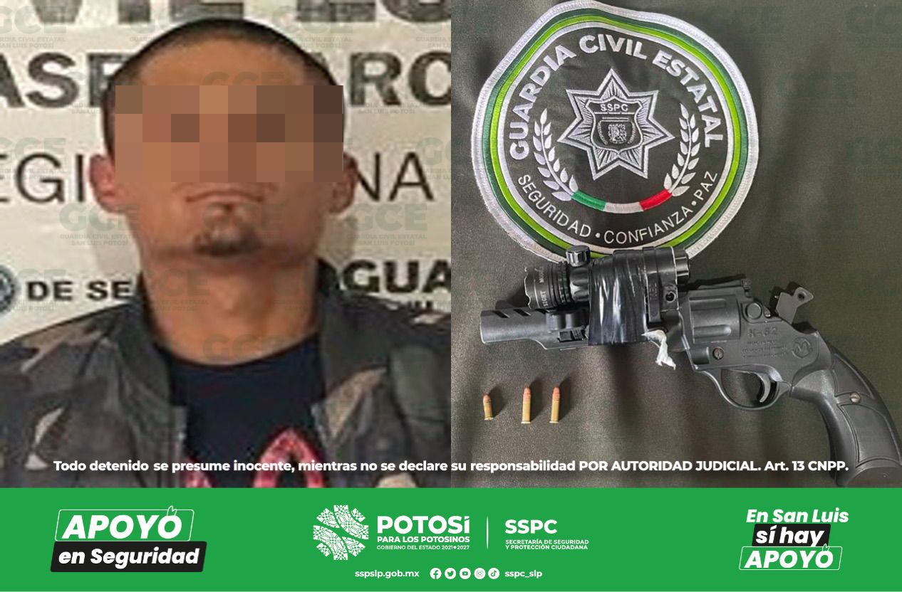 Venado, S.L.P.- Tras las acciones de seguridad emitidas dentro del operativo “Altiplano Seguro” oficiales de la Guardia Civil Estatal (GCE) detuvieron a un individuo que fue capturado con una cachimba.