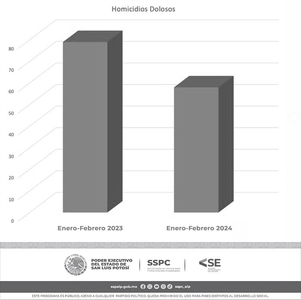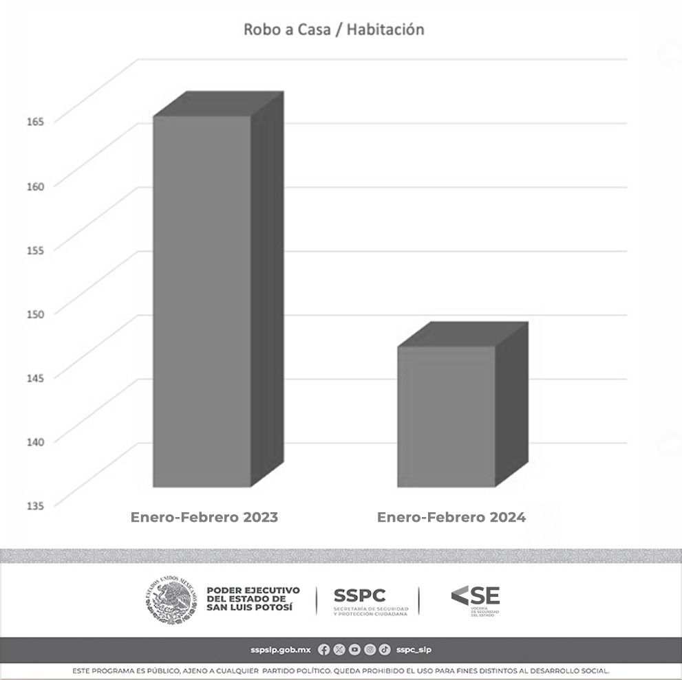 San Luis Potosí registró una disminución de hasta un 75 por ciento en los índices delictivos de robo y 27 por ciento en hechos de alto impacto, como homicidios dolosos, durante los primeros meses del año en curso en comparación con el mismo período del año anterior, de acuerdo con información del Secretariado Ejecutivo del Sistema Nacional de Seguridad Pública (SESNSP), dio a conocer la Vocería de Seguridad del Estado (VSE).