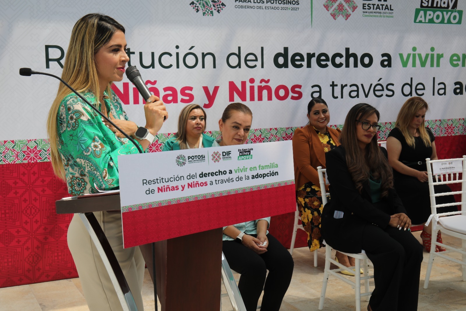 En apoyo a la protección de los derechos de las niñas y los niños potosinos para garantizar su derecho a vivir en familia, la presidenta honoraria del Sistema Estatal para el Desarrollo Integral de la Familia (DIF), Ruth González Silva, entregó a seis menores en acogimiento preadoptivo a sus futuras madres y padres, a fin de iniciar el trámite legal de adopción ante el Juzgado Familiar.