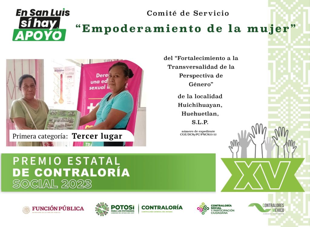La Contraloría General del Estado (CGE), dio a conocer a los Comités de Contraloría Social que representarán a San Luis Potosí en el «XV Premio Nacional de Contraloría Social 2023», cuyo objetivo es reconocer las mejores prácticas de vigilancia ciudadana en la gestión pública que promuevan la transparencia, la rendición de cuentas y el combate a la corrupción.