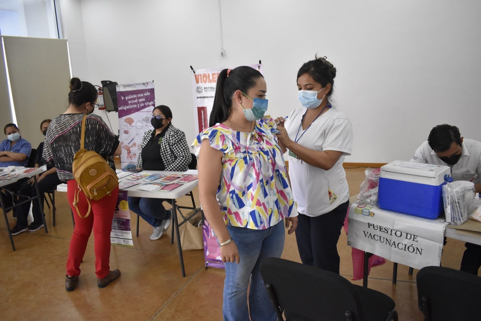 El Centro de Justicia para las Mujeres (CJM) de San Luis Potosí, gracias al convenio que firmó con los Servicios de Salud del Estado, organiza jornadas de atención a mujeres, para acercar vacunas, toma de muestras, información nutricional, asesoría sobre la violencia de género, entre otros servicios.