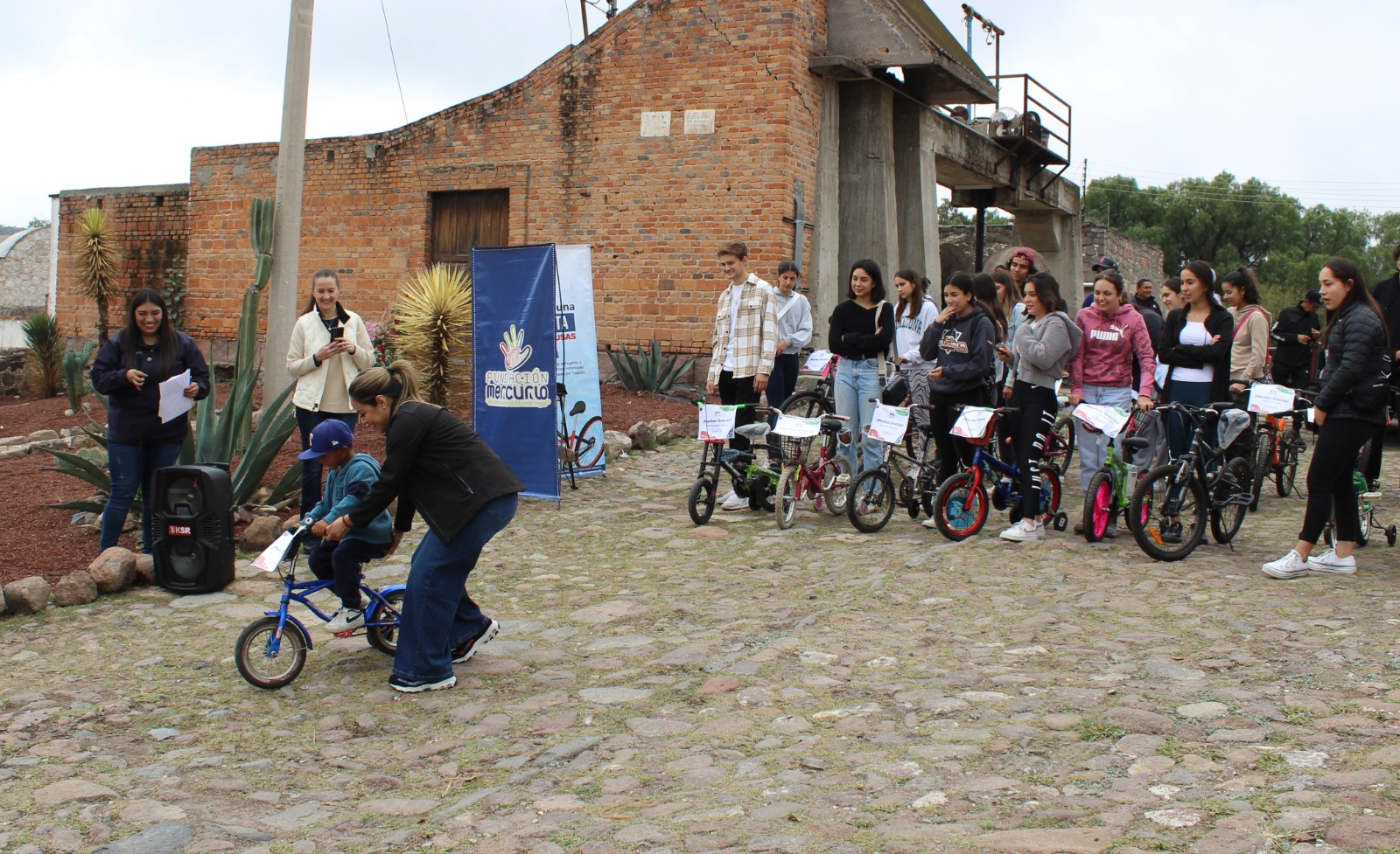 Acorde a la política social del Gobernador de San Luis Potosí Ricardo Gallardo Cardona, la titular del Coespo, Mayra Edith Velázquez Loera, dio a conocer que las bicicletas entregadas en esta localidad se encuentran en excelente estado, gracias al respaldo de Fundación Mercurio, que rehabilita y deja como nuevas las bicicletas donadas por las y los potosinos para el uso cotidiano y como medio de transporte de las y los niños.