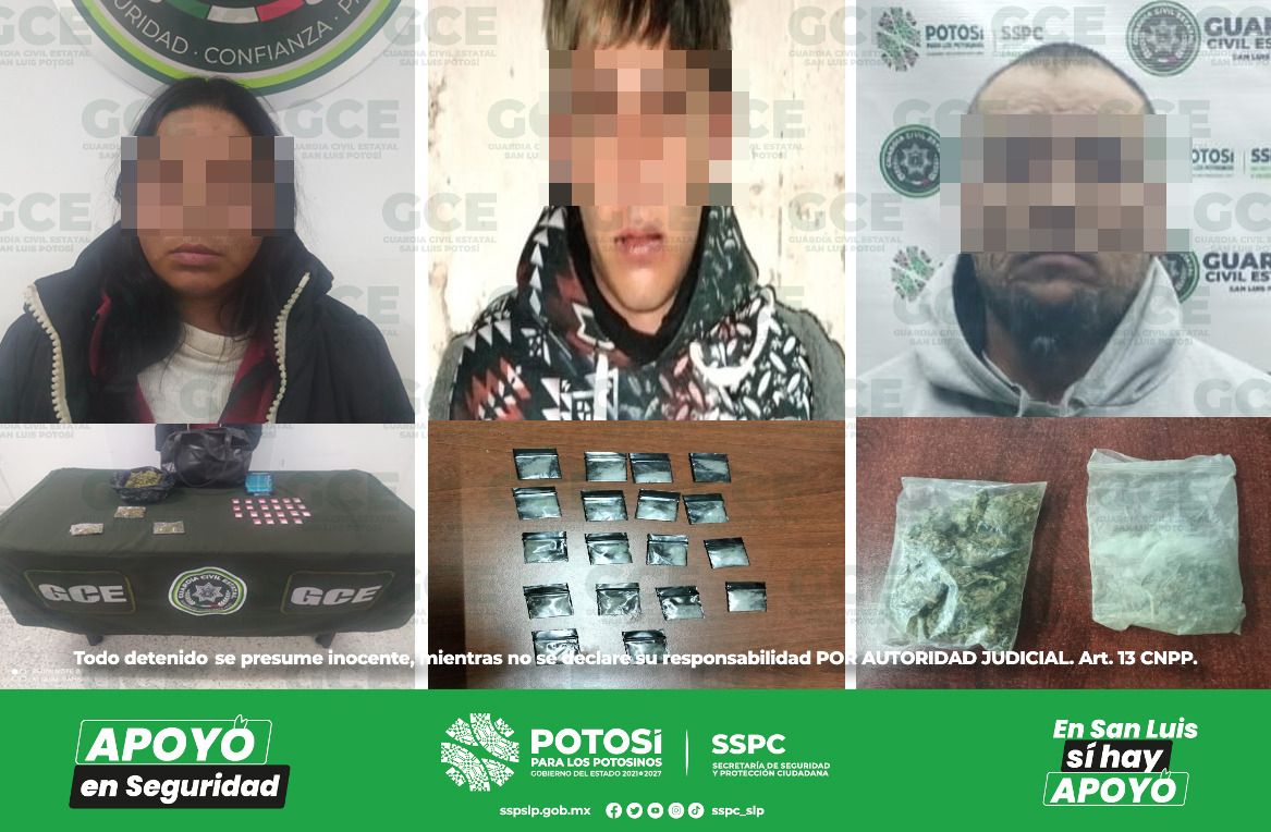 Otro de los hechos tuvo lugar en el municipio de Villa de Ramos, sobre la comunidad El Barril. Gracias a las labores disuasivas de la célula B.O.M.I. se desmanteló un probable “punto” de venta de droga en esta comunidad, logrando la detención de Arnold “N” de 19 años de edad, probable miembro de una organización criminal. En el lugar se aseguraron 18 dosis de “cristal”.