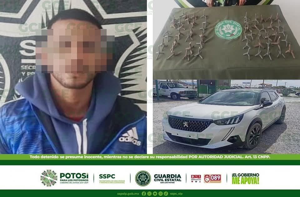 Matehuala, S.L.P.- Un presunto reincidente fue capturado por agentes de la Guardia Civil Estatal (GCE), luego de ser descubierto en un vehículo con reporte de robo, en el estado de Michoacán y que, además, fue asegurado con artefactos de varilla, conocidos como “poncha llantas”.