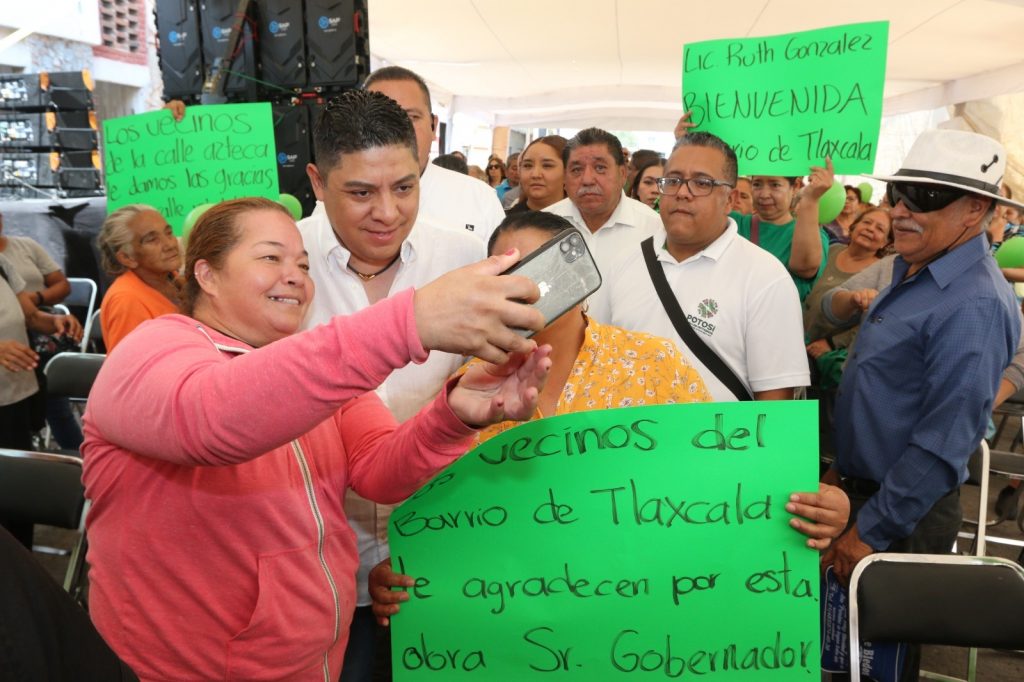 Tras la inauguración de la rehabilitación de la calle Azteca Norte en el Barrio Mágico de Tlaxcala, familias de esta parte del centro de la ciudad, agradecieron y reconocieron al Gobernador de San Luis Potosí, Ricardo Gallardo Cardona, por consolidar una obra tan importante que transforma la imagen de la zona, aumenta la plusvalía de su patrimonio y brinda mejores condiciones de bienestar y calidad de vida para todas y todos.