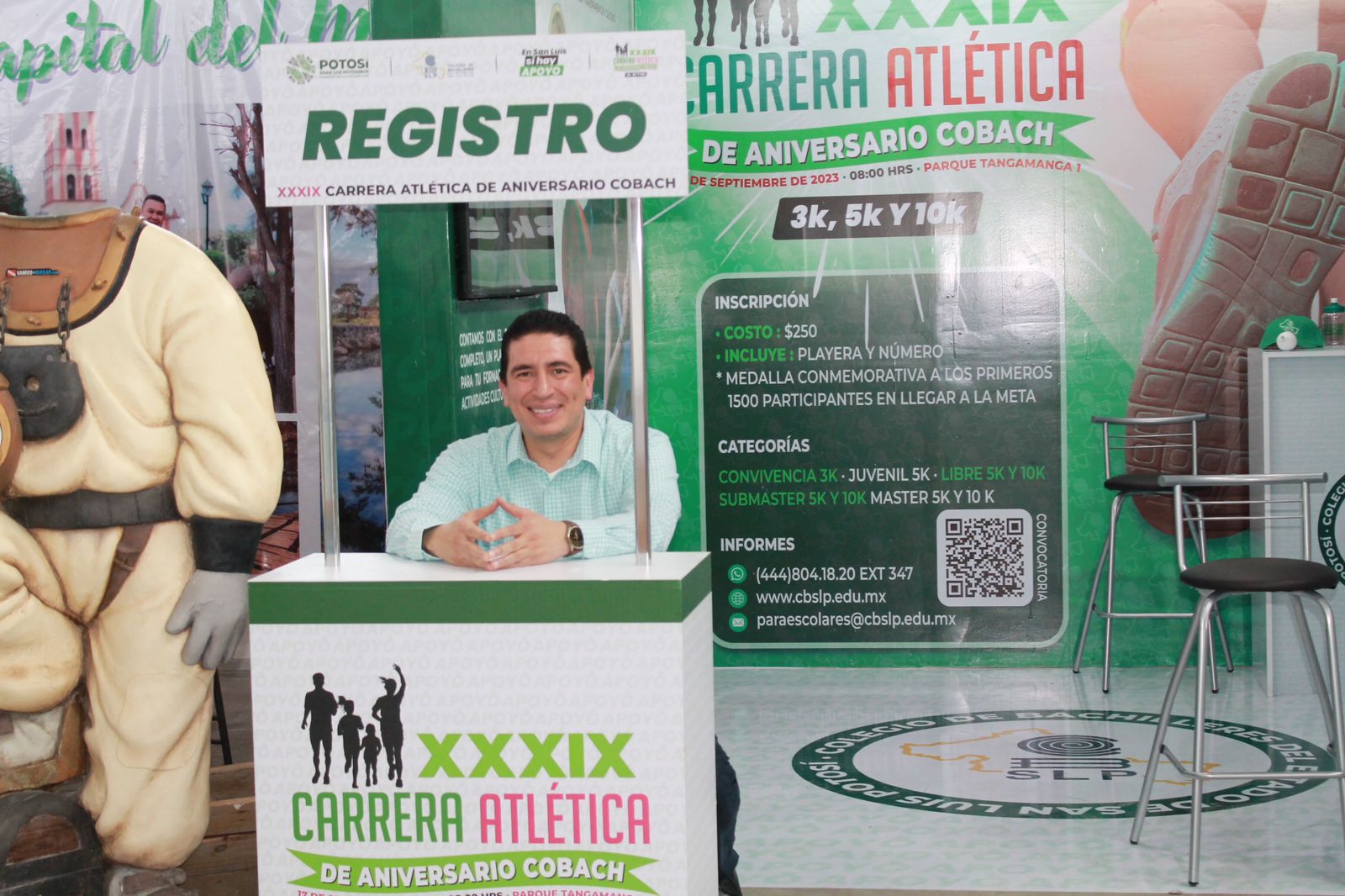En apoyo al deporte y el fomento a la actividad física, el Colegio de Bachilleres (Cobach) de San Luis Potosí, instaló en la Feria Nacional Potosina (Fenapo) edición 2023, un módulo de inscripción a la carrera de aniversario en su trigésima novena edición que se llevará a cabo el próximo 17 de septiembre en el parque Tangamanga y que ha tenido gran respuesta entre las y los visitantes de la mejor Feria de México.