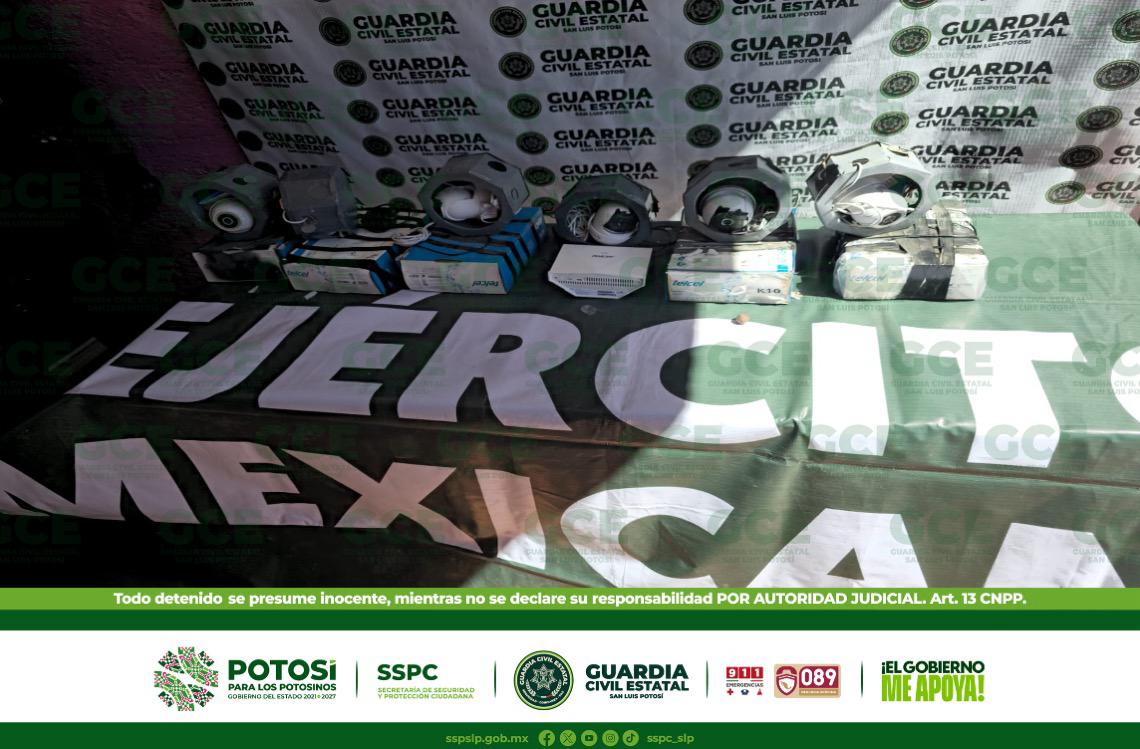 Moctezuma, S.L.P.- Acciones destacadas en el combate a la delincuencia, permitieron el desmantelamiento de una supuesta red de videovigilancia criminal, en donde la Guardia Civil Estatal y Ejército mexicano, participaron en dicho operativo, por medio de la Base de Operaciones Mixta Interinstitucional (BOMI).