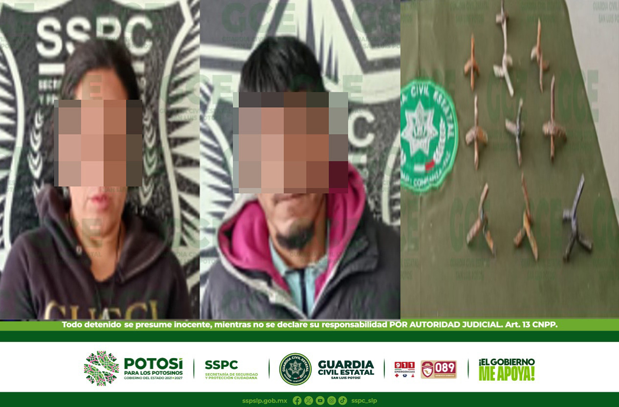Matehuala, S.L.P.- Agentes de la Guardia Civil Estatal (GCE), desplegaron un operativo en la región Altiplano, que culminó con resultados positivos tras la detención de una pareja de presuntos “halcones” o informantes de la delincuencia.