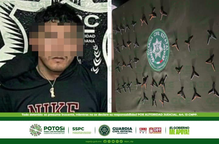 Matehuala, S.L.P.- Durante la implementación del operativo Altiplano Seguro, agentes de la Guardia Civil Estatal (GCE), detuvieron a un presunto integrante de un grupo criminal, luego de que se le aseguraran artefactos de varilla, conocidos como “poncha llantas”.