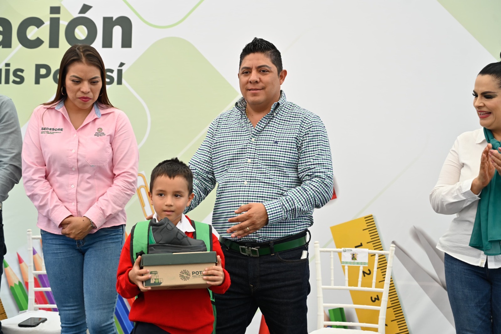 La Secretaría de Desarrollo Social y Regional (Sedesore) ha entregado los apoyos escolares en San Luis Potosí, Villa de Reyes, Santa María del Río, Villa de Arista, Villa de Arriaga, Cerro de San Pedro, Cárdenas, Cerritos, Rioverde, Tamazunchale, Ciudad Valles, Tancanhuitz, Tampamolón Corona, San Ciro de Acosta, Soledad de Graciano Sánchez, Charcas, Villa de Ramos, Villa de Arista, Santa Catarina, Santo Domingo, San Vicente Tancuayalab, San Antonio, Moctezuma, entre otros, abarcando las cuatro regiones.