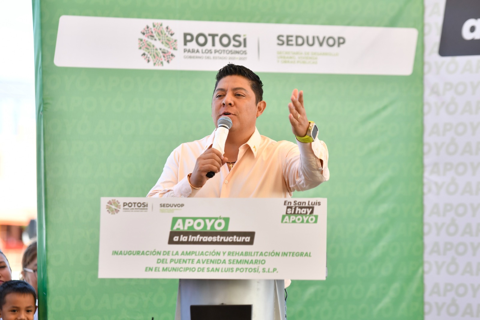 Con la rehabilitación y ampliación del puente de la avenida Seminario, que inauguró este miércoles el Gobernador de San Luis Potosí Ricardo Gallardo Cardona, con una inversión de 9.8 millones de pesos, más de 200 mil habitantes y usuarios contarán con una vialidad más segura y ágil, ya que dinamizará la movilidad al descongestionar a una de las vías más transitadas en este sector de la ciudad.