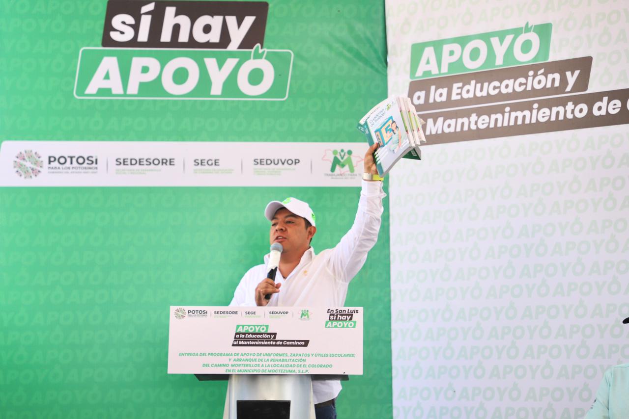 Cerca de 5 mil niñas, niños y adolescentes de Moctezuma acudirán a clases con uniformes, zapatos, mochilas y útiles nuevos, gracias al apoyo que les brinda el Gobernador de San Luis Potosí Ricardo Gallardo Cardona, quien este viernes arrancó con el Programa Entrega de Apoyos Escolares en este municipio del Altiplano.