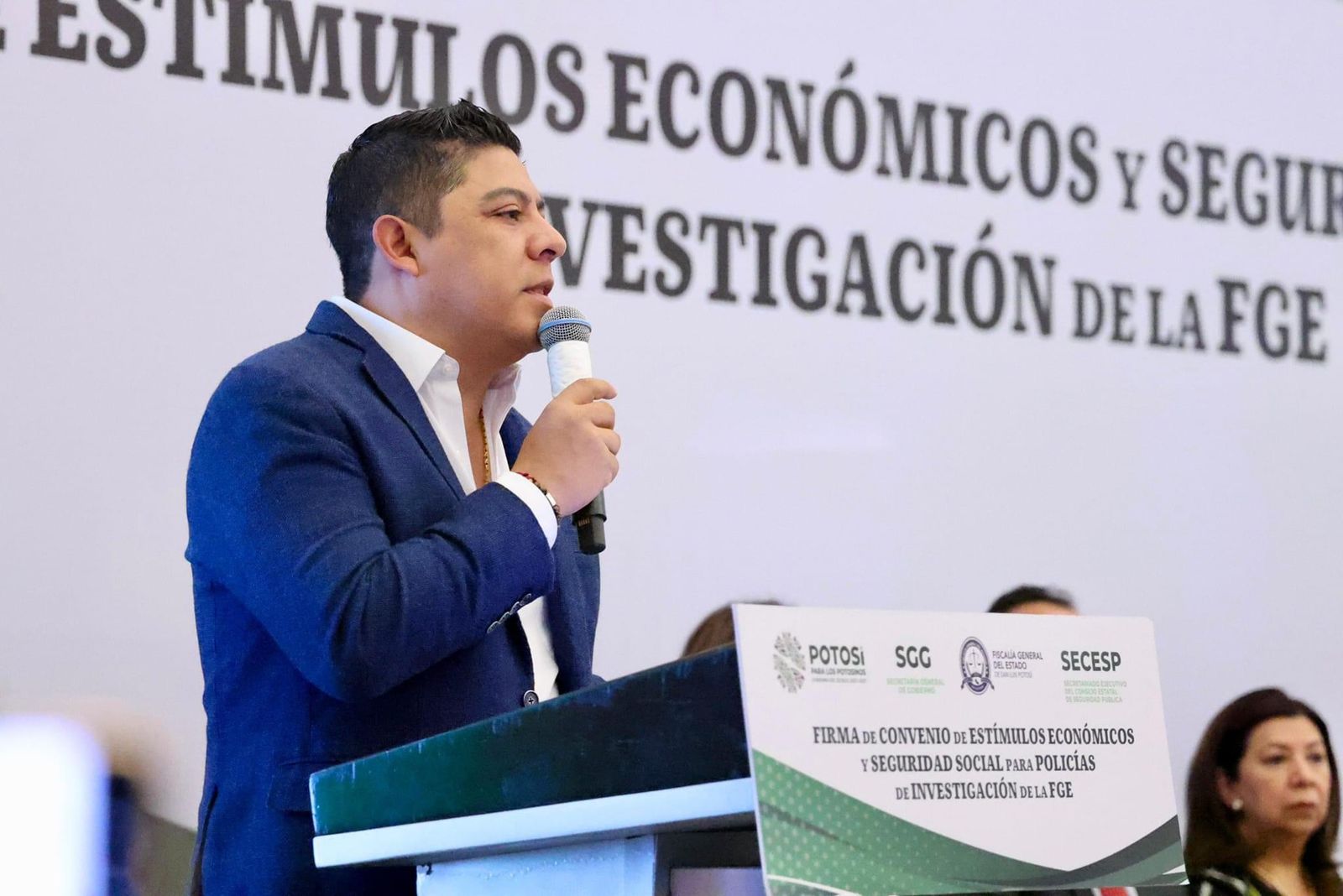 En apoyo y retribución a su labor hacia la sociedad potosina, el Gobernador de San Luis Potosí, Ricardo Gallardo Cardona, firmó el convenio de adhesión al programa estatal de estímulo social a personal operativo de la Fiscalía General del Estado (FGE), con lo que integrantes de la Policía de Investigación tendrán acceso a estímulos económicos por operatividad, seguro de gastos médicos, así como seguro por defunción y vivienda para la familia.