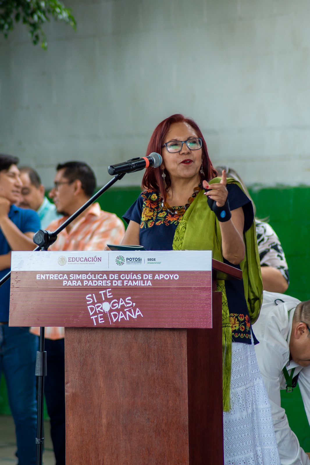 • En su visita a San Luis Potosí, la secretaria de Educación Pública federal, Leticia Ramírez Amaya, destacó el trabajo implementado con la estrategia “Si te drogas, te dañas”.