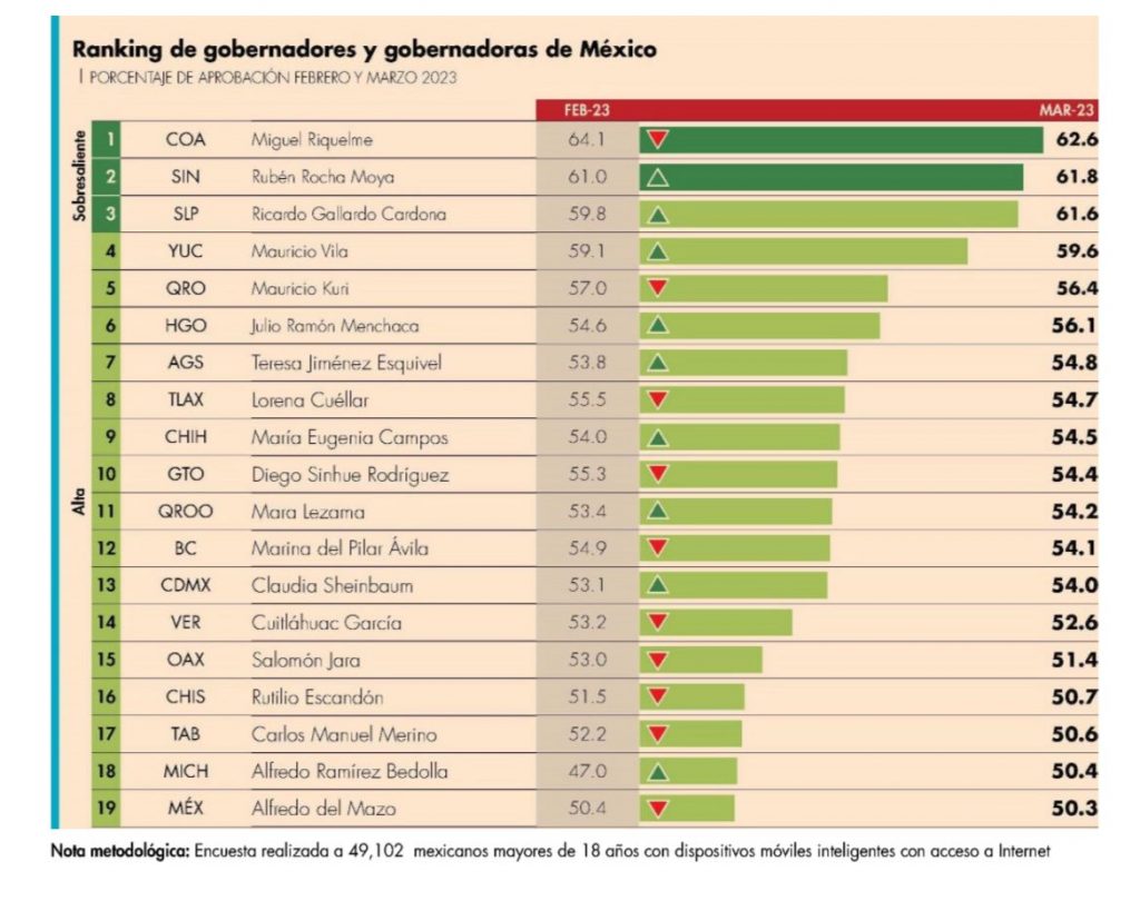 El Gobernador de San Luis Potosí, Ricardo Gallardo Cardona, logró superar su récord histórico de aprobación ciudadana con 61.6 por ciento, lo que lo colocó en el tercer lugar nacional mejor evaluado y a la entidad como una de las pocas con una calificación sobresaliente, de acuerdo con la última medición del medio nacional El Economista, del mes de marzo.