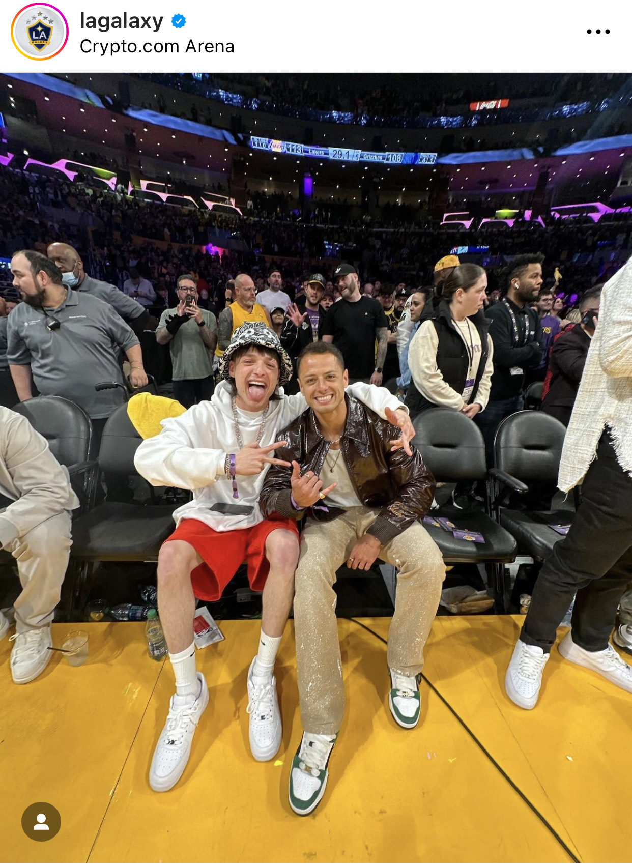 Chicharito y Peso Pluma juntos en el partido de los Lakers.