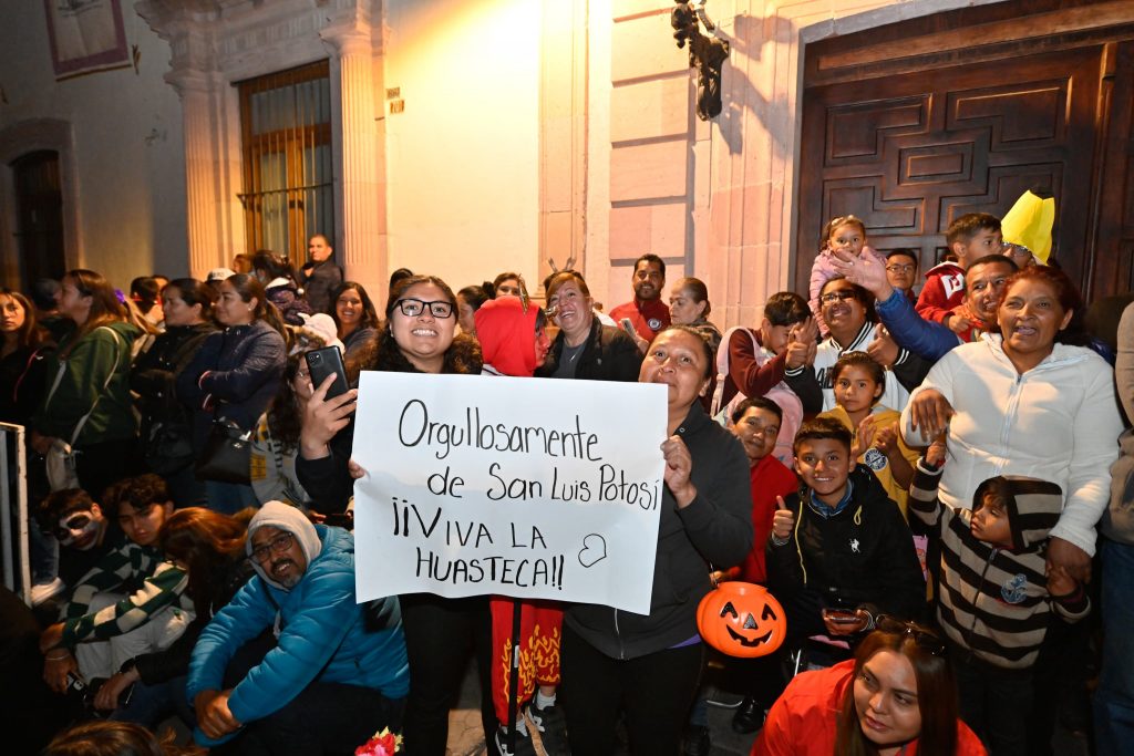La representación potosina se convirtió en el mayor atractivo del desfile en el estado hermano de Zacatecas en esta edición 2023, donde llamaron la atención los bailes y las máscaras confeccionadas por los propios portadores, además de las llamativas mojigangas que fueron objetivo de fotografías del recuerdo de esta tradición que por primera vez sale de San Luis Potosí para mostrar cómo viven las comunidades huastecas la fiesta de los muertos.